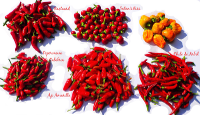 Links onder: Peperoncini di Calabria, zeer geschikt voor pasta ailjo, olio e peperoncini, deze zijn van een een jaar oude plant en er zitten nog veel meer aan.